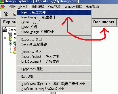 1.在Documents目錄下新建一個(gè)*.PCB文件,這樣做的目的是要讓*.SCH和*.PCB在同一目錄下