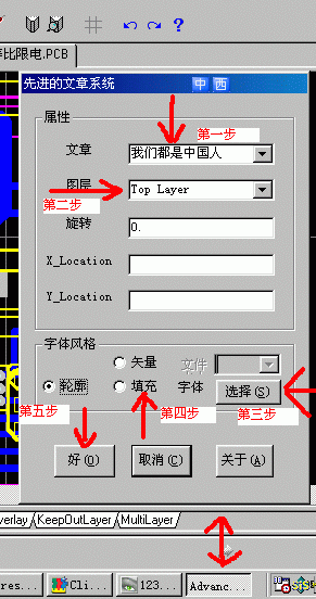 protel99的pcb如何添加漢字?[groupid=150]Protel群[/groupid]