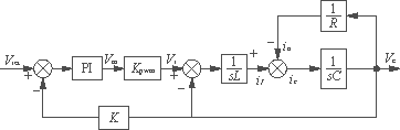外環(huán)電壓調(diào)節(jié)器Gv(s)一般采用比例一積分(PI)調(diào)節(jié)器,內(nèi)環(huán)電流調(diào)節(jié)器Gi(s)可以采用比例(P)調(diào)節(jié)器。圖2所示是逆變器電感電流內(nèi)環(huán)電壓外環(huán)控制系統(tǒng)的結(jié)構(gòu)框圖 在這個雙環(huán)控制方案中,電流內(nèi)環(huán)采用