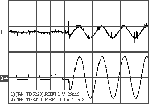 ??? 上述策略在一臺(tái)25Hz/1kVA逆變電源上得到了驗(yàn)證。逆變電源的參數(shù)如下:輸入市電220V/50Hz,輸出電壓分兩路,一路為軌道電源,輸出220V/25Hz,另一路為局部電源,輸出110V/25Hz,兩路電壓相位相差90°,局部超前軌道。本文以局部電壓為例,其輸出濾波電感為4mH,輸出濾波電容為5μF。DSP控制器采用的是TI公司的TMS320F241。電流使用霍爾器件進(jìn)行采樣,以提高響應(yīng)速度。