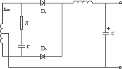 ??? 二次為雙半波整流電路如圖6所示。為分析方便,仍忽略D1,D2,D3的壓降。顯然uAB的波形、S的驅(qū)動(dòng)脈沖波形與圖5完全一致。其工作過程與橋式整流電路相似,在此不再贅述。