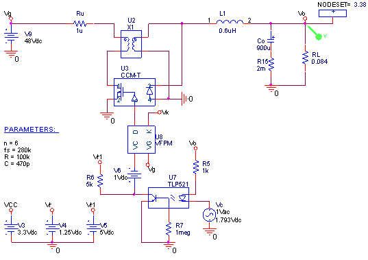 實際電路中,選用不同的控制芯片,控制電壓Vc的產(chǎn)生方式是不同的。以下是幾個我們在工作中經(jīng)常用到的幾種控制芯片的仿真實例。