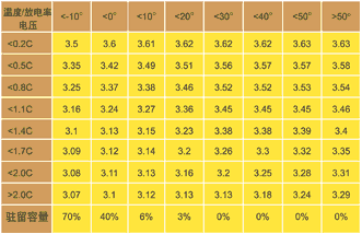 ??? PowerSmart提供了各種標(biāo)準(zhǔn)配置文件,可用于配置各種流行的充電電池和電池組應(yīng)用。圖4和表1是不同溫度,不同放電率的放電結(jié)束電壓3D模型和PS501內(nèi)部表格參數(shù)一個(gè)例子。
