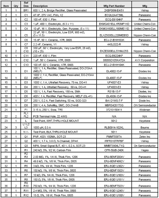 This document contains the LED driver specification, schematic, PCB diagram, bill of materials, transformer documentation and typical performance characteristics.