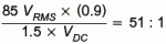 求出低壓線路VRMS電壓以后就可以定義線路至VRMS引腳的分壓器。為了減少出現(xiàn)在乘法器輸入端的二階諧波數(shù)量(其反過(guò)來(lái)又會(huì)在輸入電流中引起三階諧波)[9],相對(duì)而言,該前饋電壓必須沒(méi)有紋波。該濾波會(huì)在VRMS引腳上產(chǎn)生一個(gè)dc電壓。由于是按照其RMS值對(duì)輸入電壓進(jìn)行定義,因此必須考慮到該RMS因數(shù)(0.9)dc[9]。例如,如果該低線壓為85V,那么要求的衰減則為: