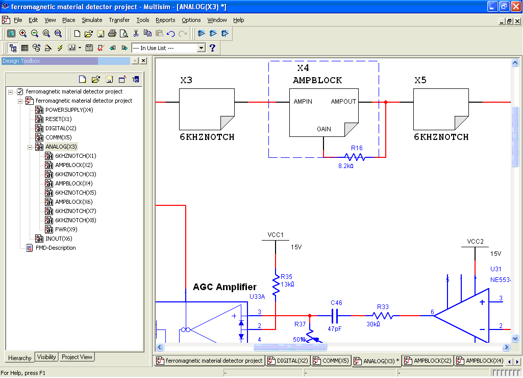 Figure 5. Modular design with Hierarchical Blocks in Multisim