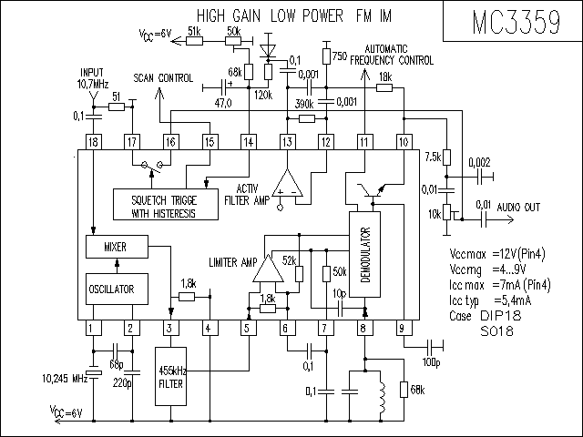 該電路采用一個(gè)Motoroia MC3363LSI(大規(guī)模