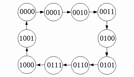因為六進制計數(shù)器的有效狀態(tài)有六個,而十進制計數(shù)器的有效狀態(tài)有十個,所以用十進制計數(shù)器構(gòu)成六進制計數(shù)器時,我們只需保留十進制計數(shù)器的六個狀態(tài)即可。74LS160的十個有效狀態(tài)是BCD編碼的,即0000、0001、0010、0011、0100、0101、0110、0111、1000、1001[圖5-1]。
