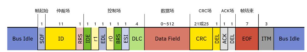 CAN幀主要包含兩個主要部分:仲裁階段和數(shù)據(jù)階段。在傳統(tǒng)CAN中,全幀以一個固定的比特率發(fā)送。在CAN FD中,如果啟用了BRS位,數(shù)據(jù)階段則以更高的比特率發(fā)送。這種較高的比特率通常是標(biāo)稱比特率的2至8倍。CAN幀中不包含任何表明比特率具體值的內(nèi)容。