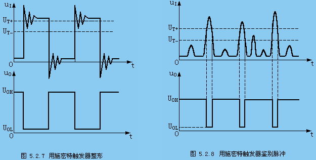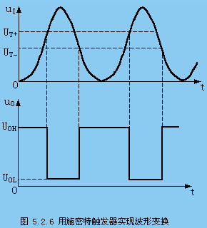 圖5.2.6所示為用施密特觸發(fā)器將正弦波變換成同周期的矩形脈沖。