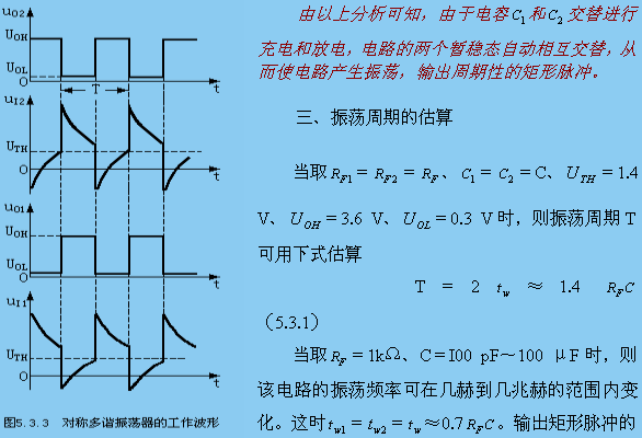 3.輸出周期性的矩形脈沖信號,由于含有豐富的諧波分量,故稱作多諧振蕩器。