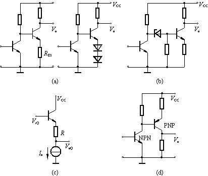 (a) 墊高后級的發(fā)射極電位;(b) 穩(wěn)壓管電平移位; |