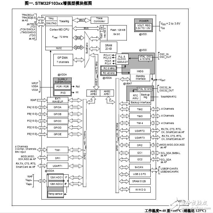 STM32F103系列器件有哪些功能與配置呢?STM32F103系列器件模塊的框架是由哪些部分組成的?