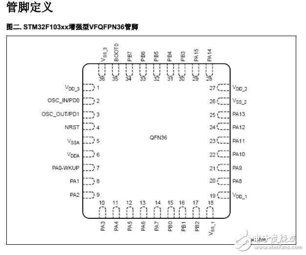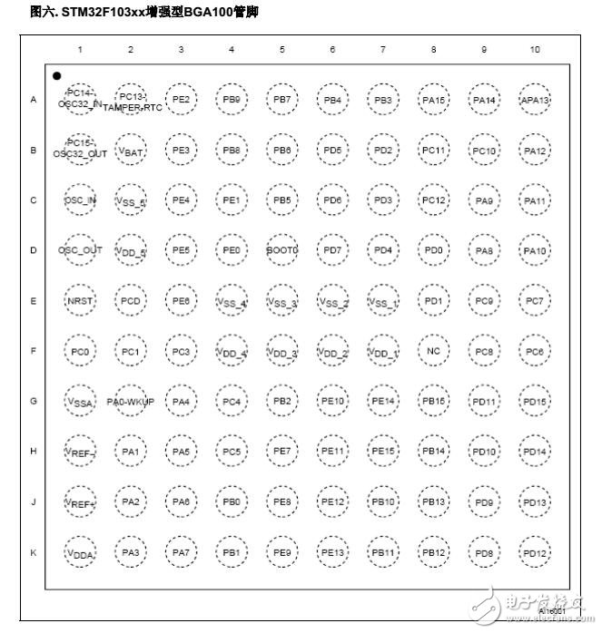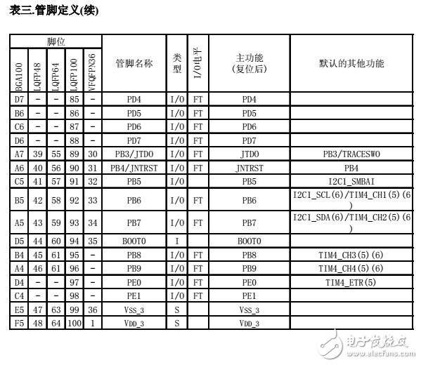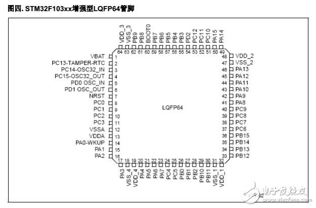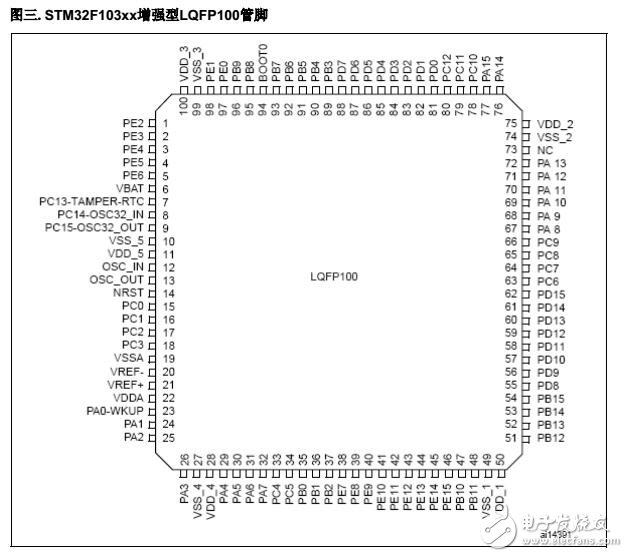 在《STM32F103xCDE_DS_CH_V5(帶有引腳定義)》手冊中第18頁有這個100腳芯片的引腳分布,做STM32F103設(shè)計的常常用到。