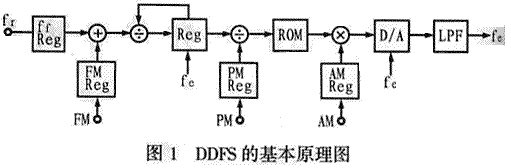 直接數(shù)字頻率合成(DDSDigital Direct Frequency Synthesis)技術(shù)是一種新的頻率合成方法 DDS是一種全數(shù)字化的頻率合成器,由相位累加器、波形ROM、D/A轉(zhuǎn)換器和低通濾波器構(gòu)成。時鐘頻率給定后,