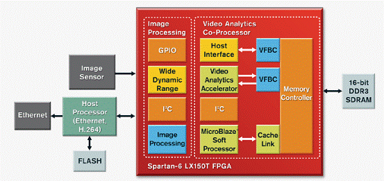 Surveillance Image Capture and Analytics Engine Integrate sensor interfacing, video analytics, image enhancement and network interfacing in a single Spartan-6 LX150T FPGA.