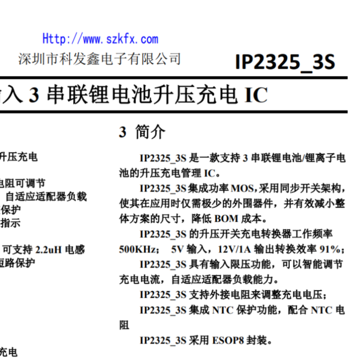 產(chǎn)品型號:IP2305 充滿電壓::4.2V 充電電流 :500mA 封裝:ESOP8 -