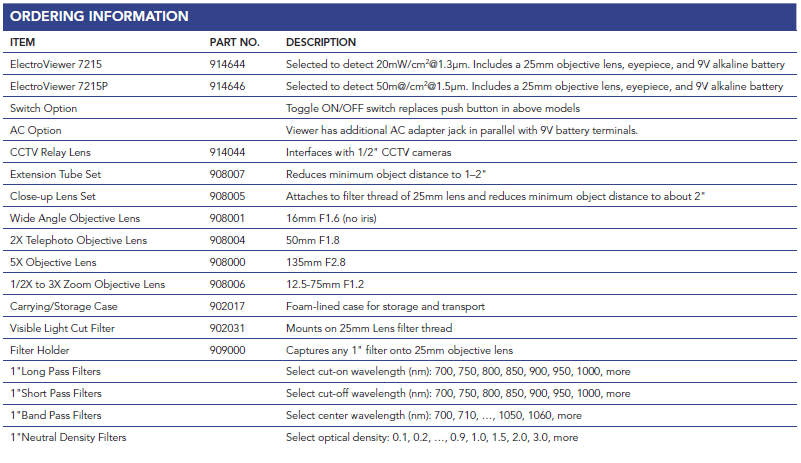 7215手持式紅外觀察儀紅外激光觀察鏡原產(chǎn)自美國Electrophysics,公司有近三十年研究和生產(chǎn)光電成像產(chǎn)品的歷史,其產(chǎn)品與服務(wù)在美國的工業(yè)、商業(yè)和政府機(jī)構(gòu)都享有較高的聲譽(yù)。 ElectroViewer 7215是一個(gè)高性能,手持式的近紅外觀察儀,可以滿足近紅外波長范圍內(nèi)的觀測需求。不同于其他品牌的紅外觀察儀,ElectroViewer可以顯示非常明亮的圖像。聚焦距離最近可達(dá)75mm,非常適合實(shí)驗(yàn)室和現(xiàn)場野外使用。