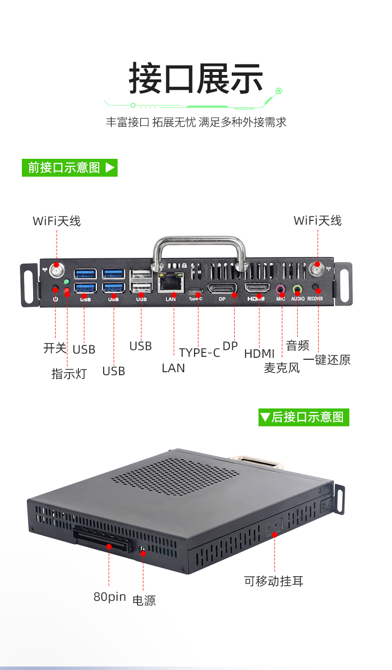 顯示輸出豐富,包括 IO Port 的 HDMI+DP+Type-C_DP,支持高清顯示和多屏輸出,