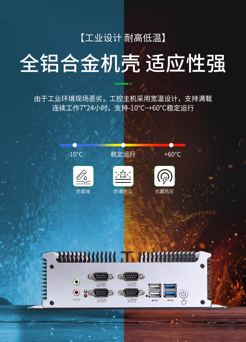 環(huán)境適應(yīng)能力,工作溫度范圍為 0~60℃,存儲溫度為 - 20℃~75℃,可在高低溫環(huán)境下穩(wěn)定運行;支持 0%~95% 相對濕度(無冷凝),能應(yīng)對潮濕環(huán)境,適合工廠車間、戶外機房等復(fù)雜場景1。散熱系統(tǒng)配備自帶 CPU 散熱器,包含 1 個 SYS_FAN 3Pin 風扇與 1 個 CPU_FAN 4Pin 風扇,保障設(shè)備在持續(xù)運行中保持適宜溫度,延長使用壽命。
