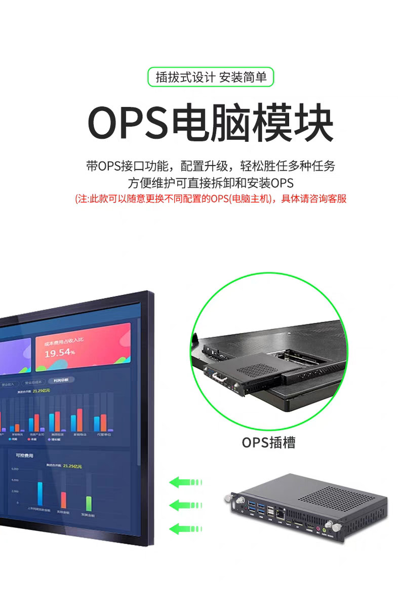 同時(shí),其采用插拔式設(shè)計(jì),安裝簡單方便。用戶可直接拆卸和安裝 OPS 電腦模塊,便于設(shè)備的維護(hù)和升級(jí)。此外,還具備網(wǎng)絡(luò)喚醒功能,方便用戶進(jìn)行便捷操控。