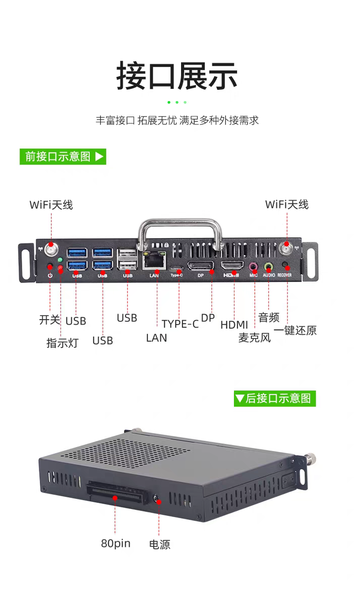 在實(shí)際應(yīng)用中,無論是教育機(jī)構(gòu)的教學(xué)場(chǎng)景,還是企業(yè)的會(huì)議環(huán)境,用戶無需擔(dān)心設(shè)備之間的兼容性問題,可輕松將該 OPS 電腦與現(xiàn)有設(shè)備進(jìn)行連接和適配,降低了設(shè)備更換和升級(jí)的成本與難度。