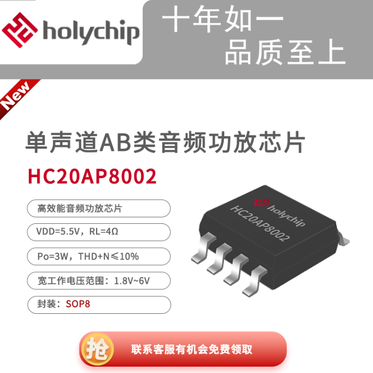 芯圣原廠HC20AP8002音頻功放3W單聲道AB類芯片SOP8 便攜式音頻2025-11-03 10:55
