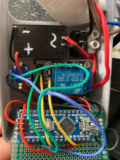 這個(gè)計(jì)時(shí)器的明星是旋轉(zhuǎn)編碼器。我一直想使用我躺在身邊的那個(gè),但直到我找到一個(gè)可以運(yùn)行的 Arduinoscript,我才成功地讓它工作。它以某種方式使用中斷,我不完全理解它是如何工作的,但它工作得很好。只要您使用引腳 2 和 3,您就可以使用任何 Arduino 或類似產(chǎn)品。我喜歡使用開(kāi)/關(guān)按鈕,但這不是強(qiáng)制性的。它打開(kāi)為 Arduino 和綠色 LED 供電的小電源。5v 繼電器打開(kāi) 110/230V 設(shè)備,該設(shè)備連接到廉價(jià)的壁裝插座和紅色 LED。繼電器粘在七段顯示器的背面,中間有一小塊塑料(包含在 3D 打印機(jī)部件中)。