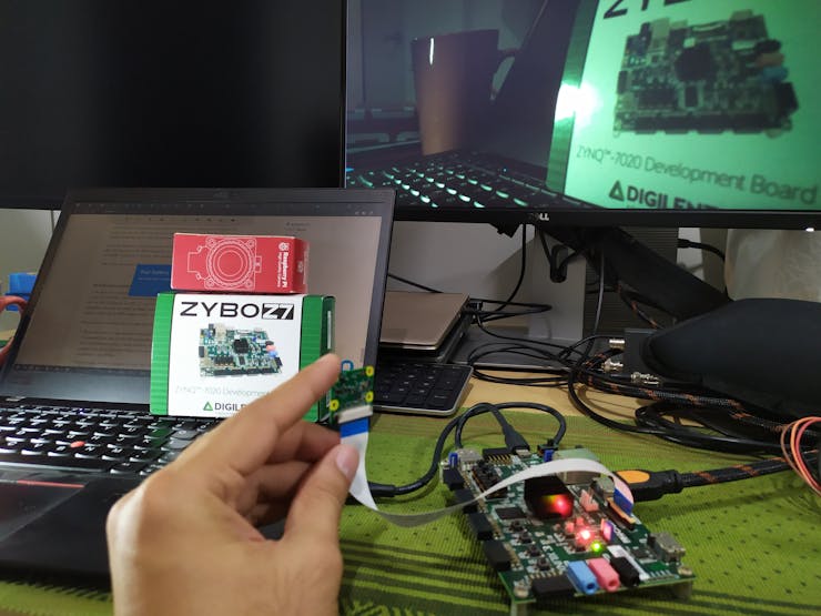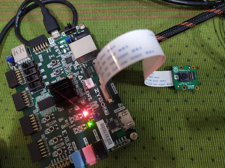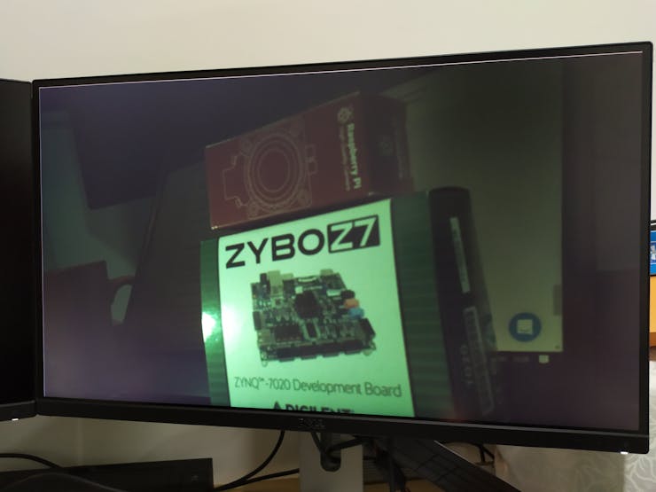 軟件修改完成后,剩下要做的就是將 RPi v2.1 攝像頭連接到 Zybo-Z7 上的 MIPI 連接器,將 HDMI 電纜從 HDMI TX 端口連接到顯示器,然后上傳代碼。