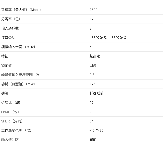 ADC12xJ1600 是四通道、雙通道和單通道、12 位、1.6GSPS 模數(shù)轉(zhuǎn)換器 (ADC) 系列。低功耗、高采樣率和 12 位分辨率使 ADC12xJ1600 適用于各種多通道通信和測試系統(tǒng)。 6GHz的全功率輸入帶寬(?3dB)支持L波段和S波段的直接RF采樣。...
