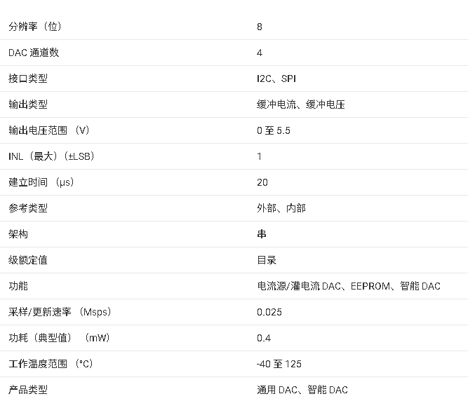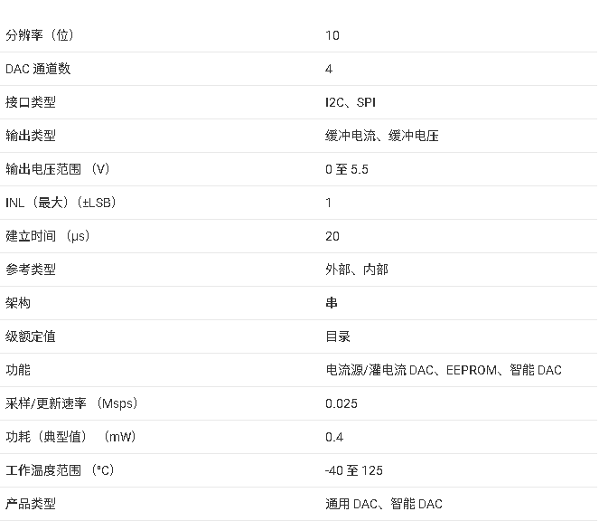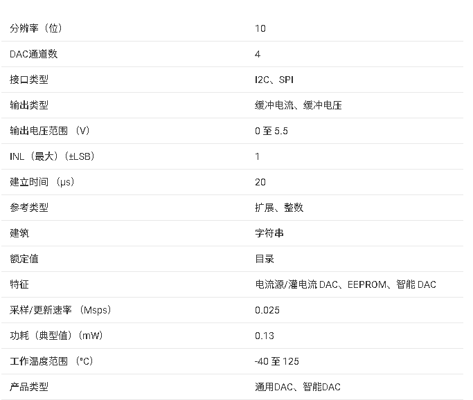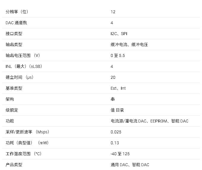12 位 DAC63004 和 10 位 DAC53004 (DACx3004) 是引腳兼容的超低功耗、四通道、緩沖、電壓輸出和電流輸出智能數(shù)模轉(zhuǎn)換器 (DAC) 系列。這些DACx3004支持Hi-Z掉電模式和斷電條件下的Hi-Z輸出。DAC輸出提供力檢測選項(xiàng),用作可編程比較器和電流吸收器。多功能...