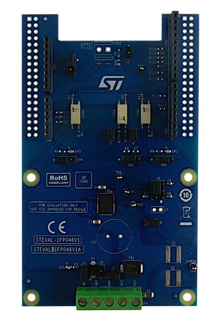 STMicroelectronics STEVAL-IFP046V1擴(kuò)展板是用于IPS1025H-32的工業(yè)數(shù)字輸出擴(kuò)展板。IPS1025H-32單通道高側(cè)智能電源固態(tài)繼電器可在連接5.7A工業(yè)負(fù)載的數(shù)字輸出模塊中評(píng)估。STEVAL-IFP046V1板通過5kV光耦合器(由GPIO引腳和Arduin...