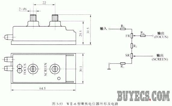 WⅡ-6型聚焦電位器的外形及電路如圖3-53 所示,其主要參數(shù)見表3-37。