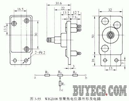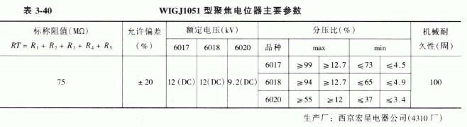 WIGJ1051型聚焦電位器的外形及電路如圖3-56 所示,其主要參數(shù)見表3-40。