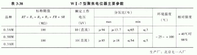 WⅡ-7型聚焦電位器的外形及電路如圖3-54 所示,其主要參數(shù)見表3-38。