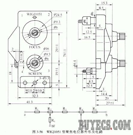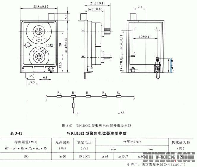 WIGJ1052型聚焦電位器的外形及電路如圖3-57 所示,其主要參數(shù)見表3-41。