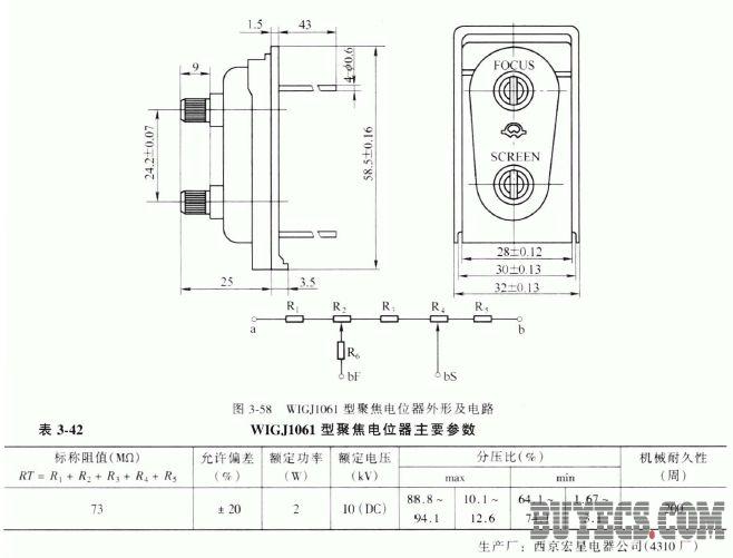WIGJ1061型聚焦電位器的外形及電路如圖3-58 所示,其主要參數(shù)見表3-42。