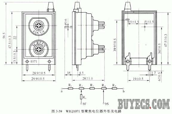 WIGJ1071型聚焦電位器的外形及電路如圖3-59 所示,其主要參數(shù)見表3-43。