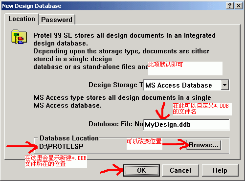 打開Protel99se,在上面所建立的文件夾中以你的姓名為文件名建立
