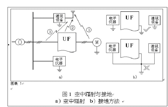 變頻器系統(tǒng)電磁干擾的傳播途徑:變頻器能產(chǎn)生功率較大的諧波,對系統(tǒng)其他設(shè)備干擾性較強(qiáng)。其干擾途徑與一般電磁干擾途徑一樣,有電磁輻射、電路耦合、感應(yīng)耦合等?! ?1. 電磁輻射 變頻器對電網(wǎng)來說