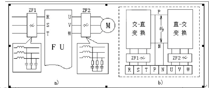 和輸出電纜。在上述的射頻傳導(dǎo)發(fā)射干擾的情形中,變頻器的輸入輸出電纜上有射頻干擾電流時(shí),由于電纜相當(dāng)于天線,必然會產(chǎn)生電磁波輻射,產(chǎn)生輻射干擾。變頻器輸出電纜上傳輸?shù)腜WM電壓,同樣包含豐富的高頻的成分,會