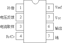 ;腳7 是控制集成電路的正電源(VCC)啟動電壓為8.4 V,最大輸出電流可以達(dá)到1 A,適合驅(qū)動MOSFET以及適用于中小功率的DC/DC開關(guān)電源;腳8是內(nèi)部基準(zhǔn)電壓源產(chǎn)生5.0 V基準(zhǔn)電壓,作為