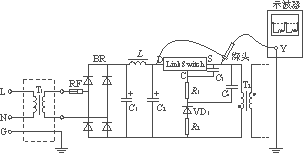??? 在用示波器觀察LinkSwitch的輸出波形時(shí),如果將探針接源極S,地線接初級(jí)的返回端,那么探頭分布電容上的電荷可能造成誤觸發(fā),使LinkSwitch達(dá)到極限電流。正確的方法是按圖4所示,將探頭的地線接LinkSwitch的漏極D,以直流作為參考點(diǎn)。由于漏極上有直流高壓,因此,在電源的進(jìn)線端必須接隔離變壓器T1。