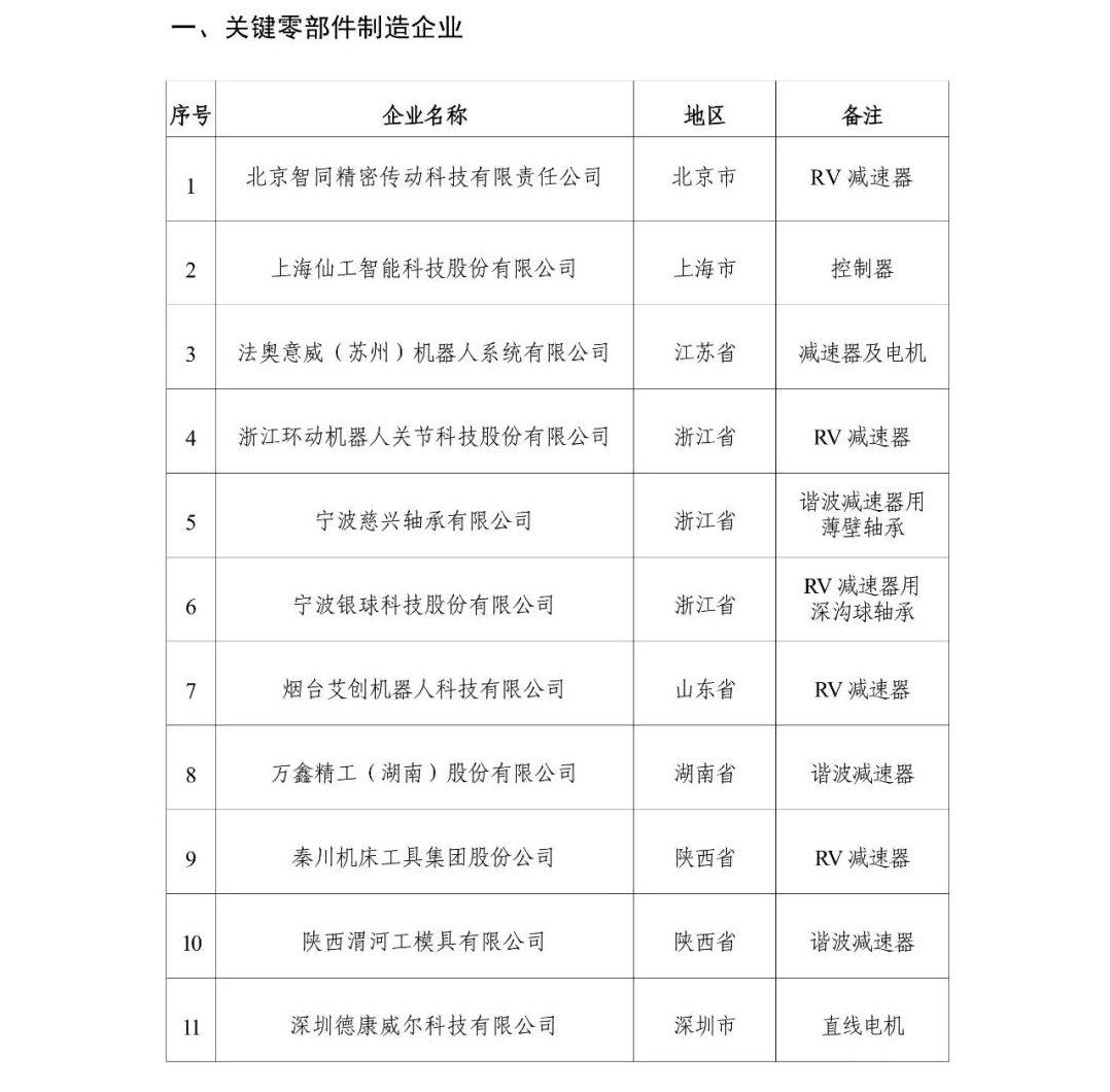 公告顯示,第二批入選企業(yè)包括智同科技、仙工智能、法奧機(jī)器人、環(huán)動(dòng)科技、慈興軸承、銀球科技、艾創(chuàng)科技、萬(wàn)鑫精工、秦川機(jī)床、渭河工模具、德康威爾。根據(jù)工業(yè)機(jī)器人行業(yè)新規(guī),核心零部件企業(yè)的營(yíng)收應(yīng)不小于3000萬(wàn)元規(guī)模,且電機(jī)、減速器、控制器等產(chǎn)品需要獲得CR認(rèn)證。