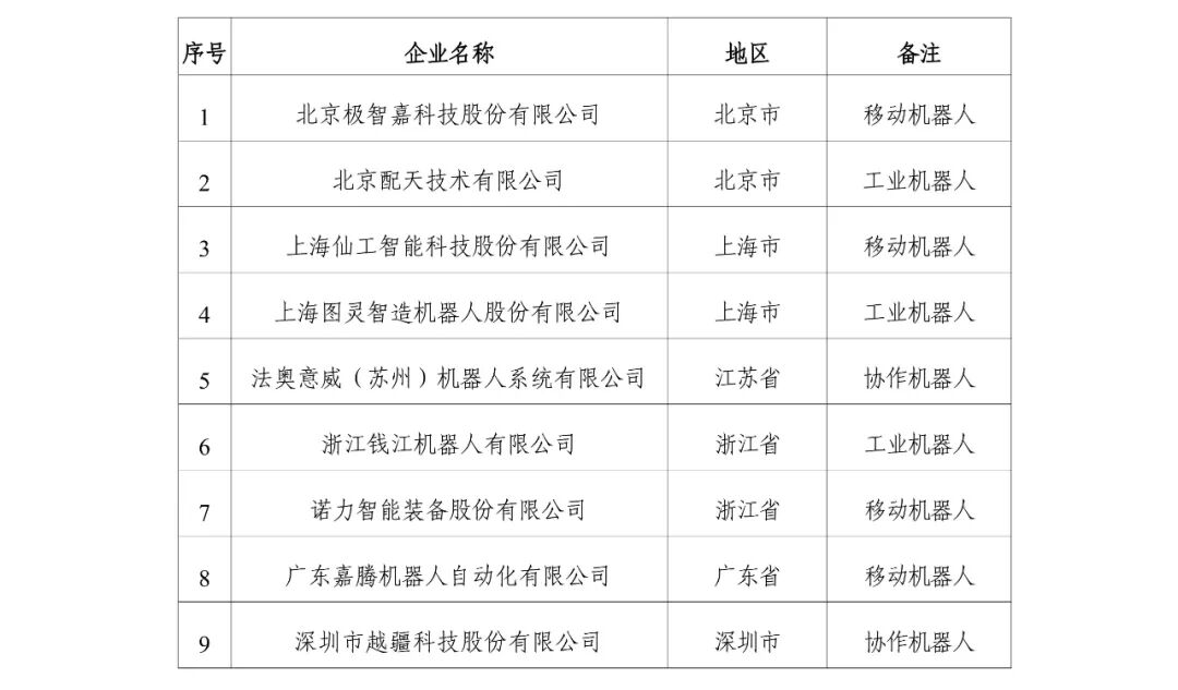 第二批工業(yè)機(jī)器人行業(yè)規(guī)范企業(yè)名單公布