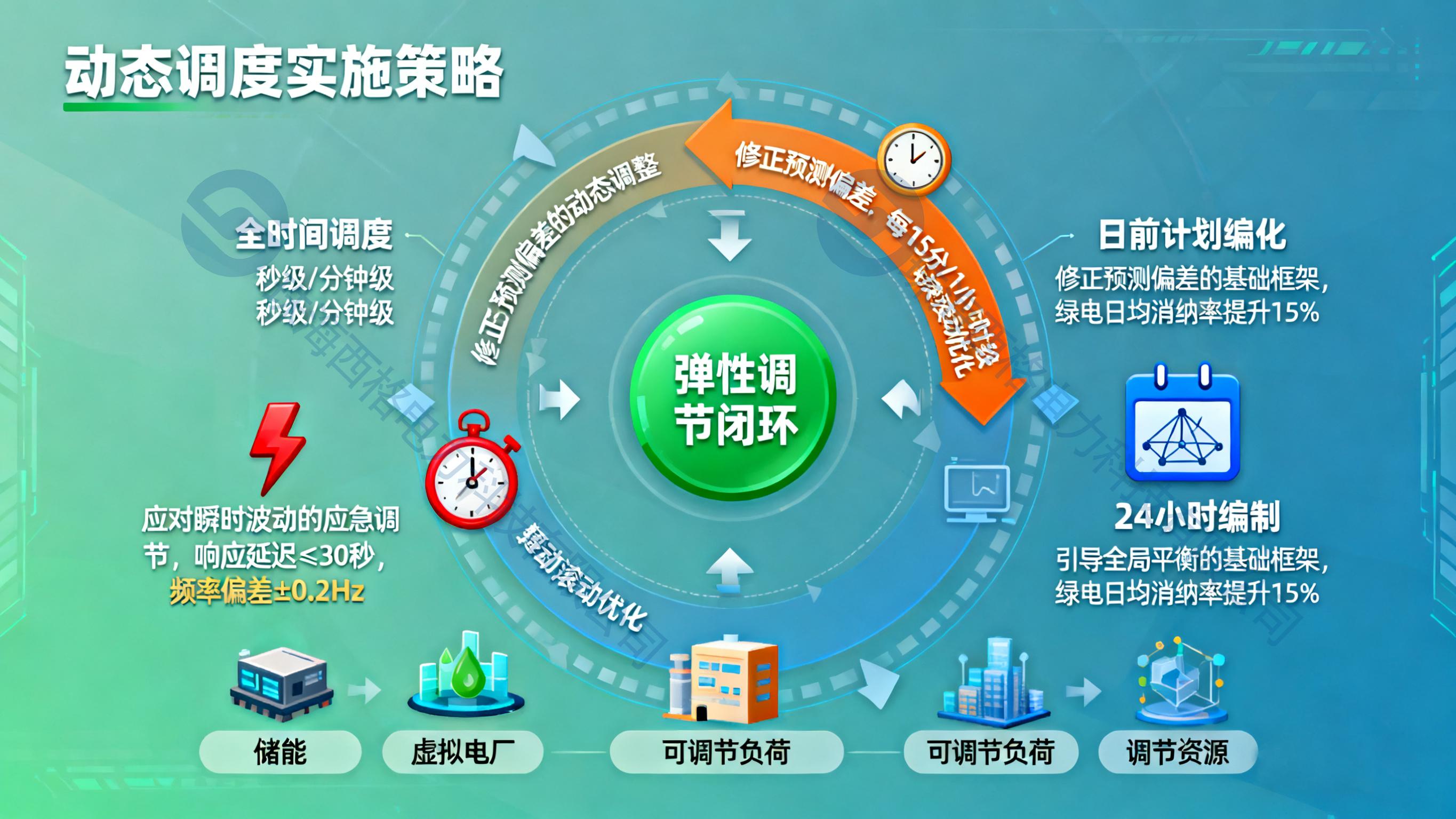 三、動(dòng)態(tài)調(diào)度實(shí)施策略:全時(shí)間尺度的“彈性調(diào)節(jié)閉環(huán)”