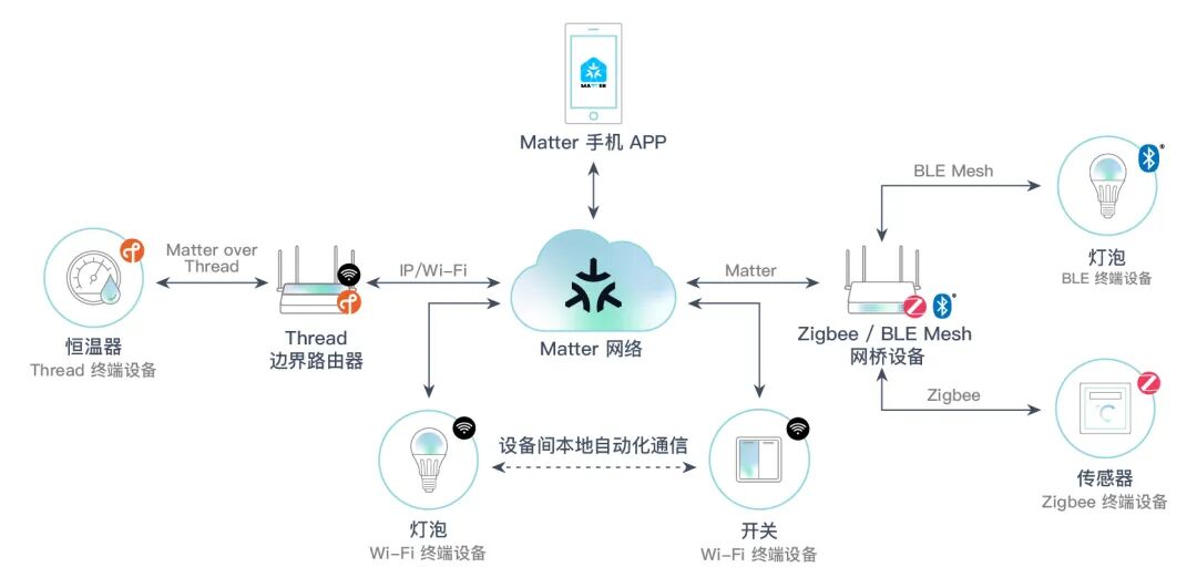 在局域網(wǎng)內(nèi)使用 Matter 和 IPv6 協(xié)議進(jìn)行通信。